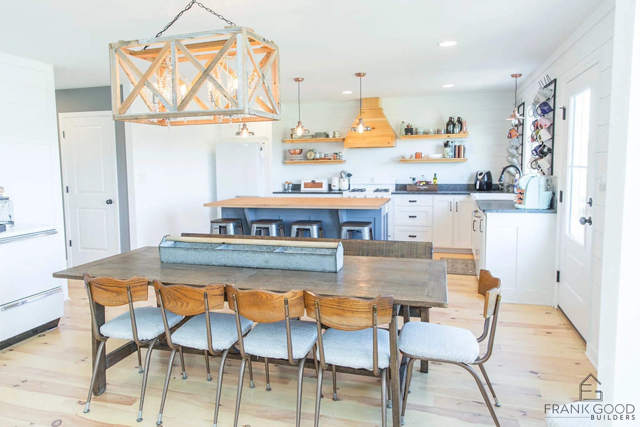 Nestled in the serene layout of The Breezewood by Frank Good Builders, thoughtful design and practical luxury blend seamlessly across two elegant floors. Upon entering the first floor, you'll step into a harmonious flow of spaces designed for living and entertaining. The heart of this home, the family room, boasts a generous space with a vaulted ceiling that amplifies the room's openness and invites natural light, making it a warm and inviting gathering space. Adjacent to the family room, a well-appointed kitchen with 227 square feet and 8' ceilings provides an ideal setting for culinary creations. The dining area, featuring 8' ceilings, is perfectly positioned for intimate family dinners or entertaining guests.