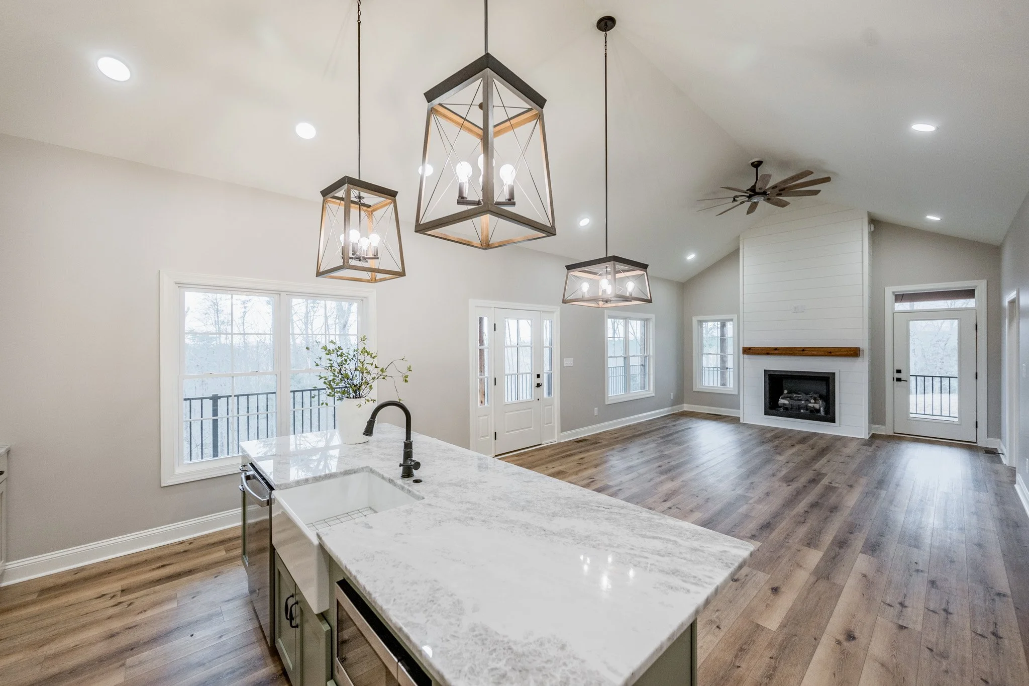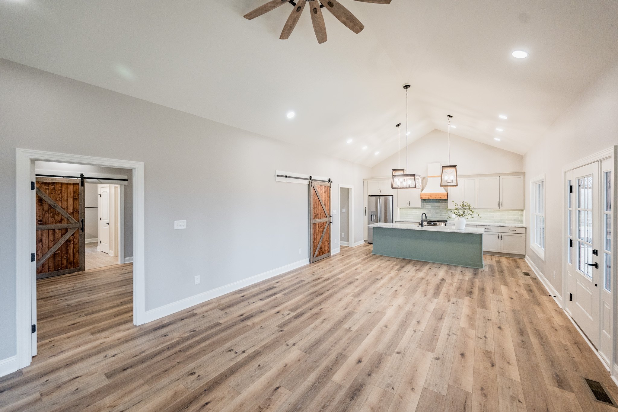 Foxfire’s thoughtfully designed floor plan offers a seamless blend of functionality and comfort, centered around open-concept living. The main living, kitchen, and dining areas flow together beneath vaulted ceilings, creating a bright, spacious heart of the home that connects effortlessly to both covered and screened outdoor spaces. The primary suite is privately situated with a well-appointed bath and generous closet, while two additional bedrooms and shared spaces are positioned on the opposite side for balance and privacy. Practical elements like a dedicated laundry, pantry, and utility storage enhance everyday living, while the attached garage adds convenience—resulting in a layout that feels both efficient and intentionally designed for modern mountain living.