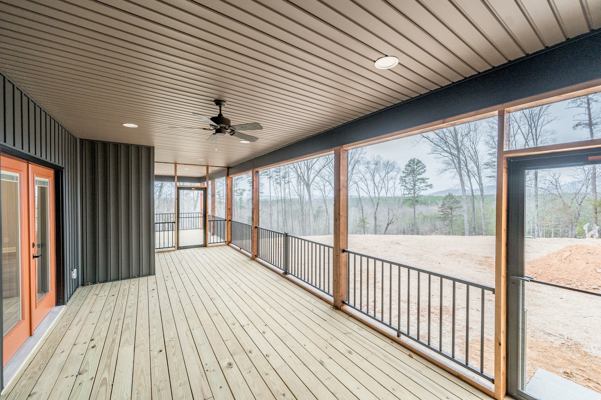 Designed to embrace its mountain setting, the screened-in porch extends Foxfire’s living space outdoors with comfort and ease. Warm wood details and a covered design create a welcoming retreat, offering fresh air and protection from the elements.