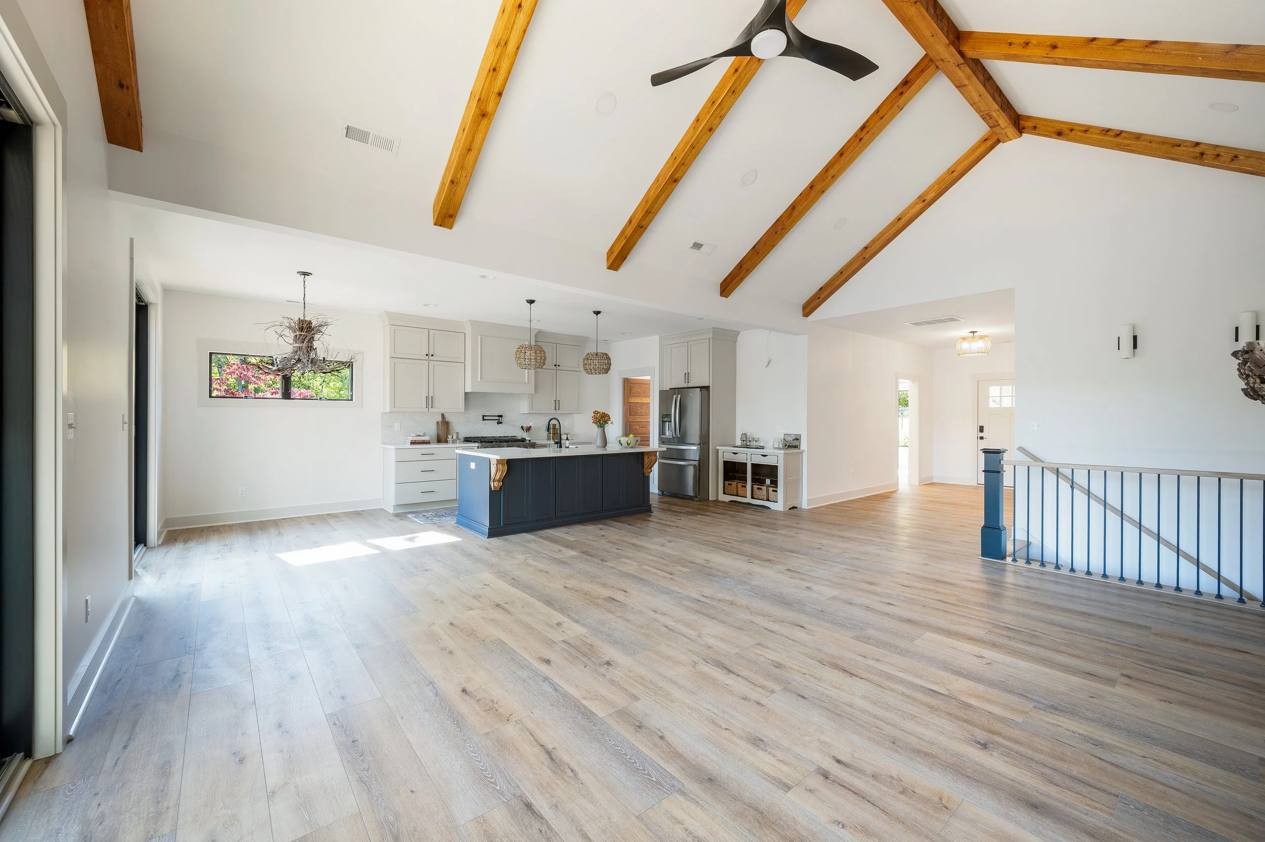 Inside, Owl Harbor features an open, light-filled layout designed to embrace the beauty of its surroundings. Natural wood accents flow throughout, enhancing the home’s airy and welcoming feel. High ceilings and thoughtful decor add a touch of elegance to the lakehouse ambiance, making every room feel both peaceful and sophisticated.