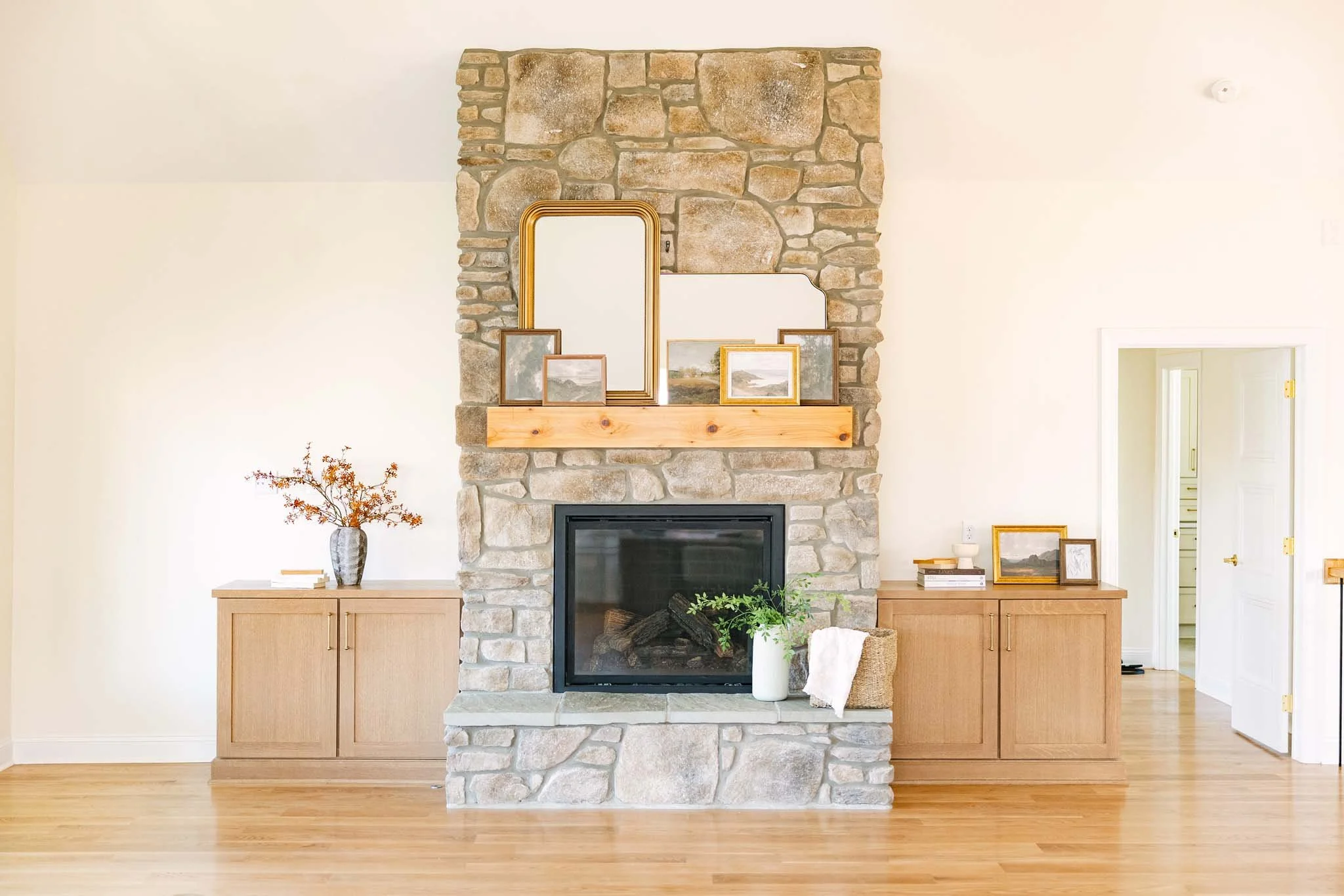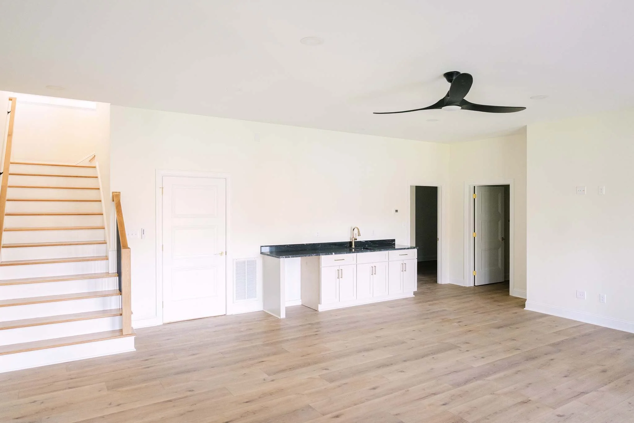 The open-concept kitchen and living spaces were crafted for both effortless entertaining and comfortable daily life, featuring custom cabinetry, an oversized island, elegant stone surfaces, warm wood accents, and refined brass fixtures. Throughout the home, wide plank hardwood flooring, carefully selected finishes, and spa inspired baths reflect a clean, sophisticated aesthetic that feels both luxurious and inviting.